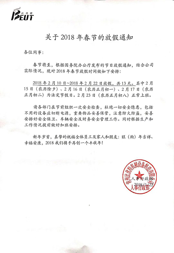 閱讀次數:2879【中國機床商務網欄目 名企在線】神犬續天雞,九州吟雪尤吟歲;新春臨大節,萬眾拜年喜迎新。金雞司晨去歲已逝,忠犬守夜喜迎新年。值此普天同慶、萬眾共賀之際,常州比優特機械設備制造有限公司(以下簡稱“常州比優特”)攜全體員工祝愿機床行業辛勤工作的全體同仁、給予了比優特巨大支持的新老用戶以及合作伙伴在新的一年里一帆風順、萬事如意、闔家團圓、幸福美滿。