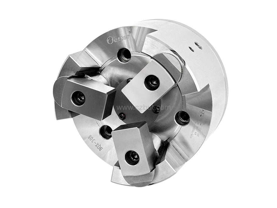 ? 軸類加工專用夾具,卡爪對工件具有后拉和補償式夾緊的功能,(該卡盤夾持力提供加工時的扭矩和后拉力),對中心的補償量為5mm